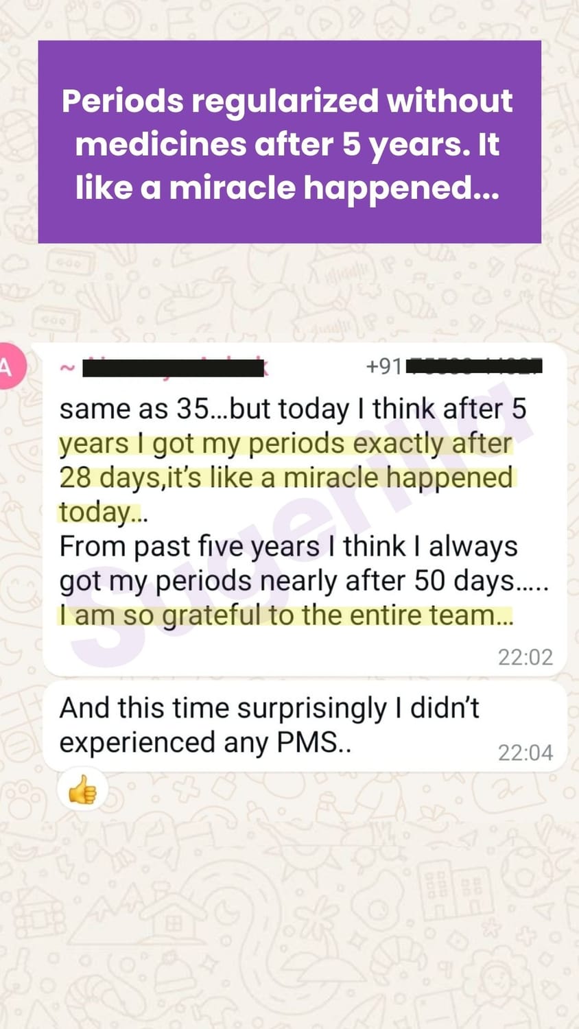 We are confident that if you participate in our program with sincere intention and follow it as guided, you will definitely see results in reversing your PCOD/PCOS. However, if you’ve sincerely followed the program and still don’t see any improvement, or if for any reason you're not satisfied, just send us a message and you will receive a 100% refund. No questions asked. Your trust means everything to us.