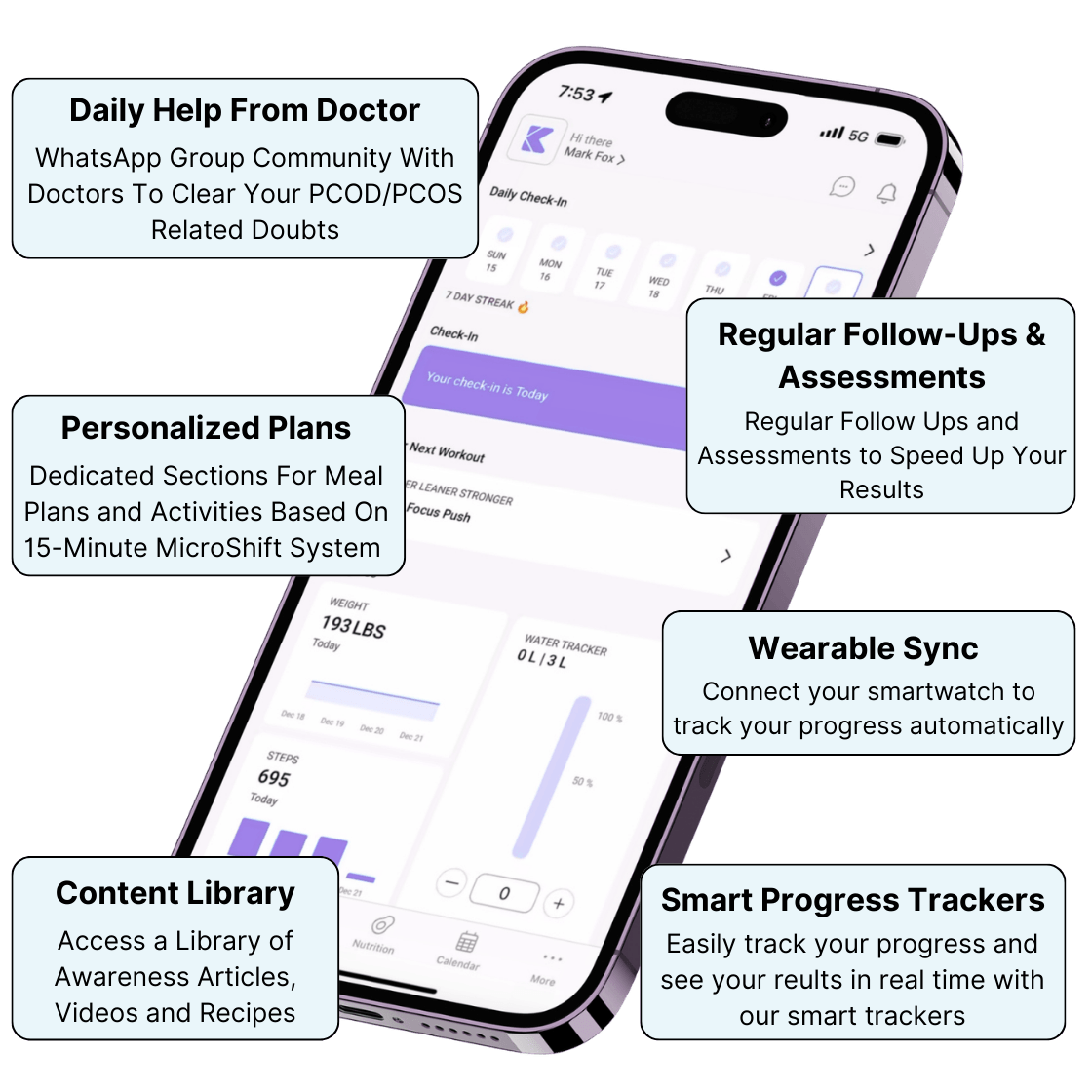 Full Access to Exclusive App with Progress Trackers, Reminders & Awareness Classes To Manage PCOD/PCOS Symptoms