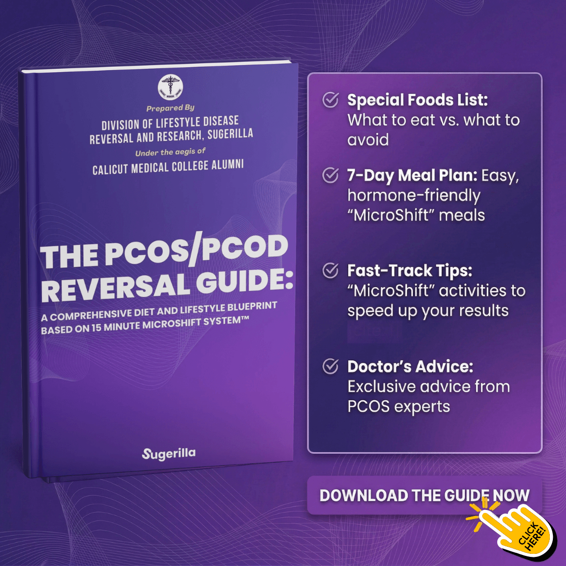If you are looking for a natural way to regularize your periods and reverse your PCOD/PCOS, this journey starts here. Watch this video, where Dr. Thasleem Shareef, Co-founder of Sugerilla, introduces a revolutionary approach to women's health: The 15-Minute MicroShift System⢠â