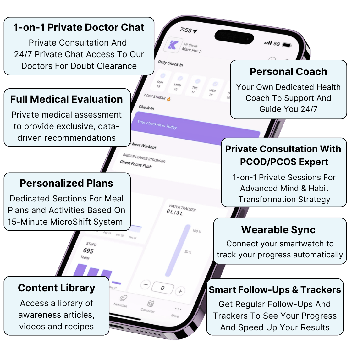 Full Access to Exclusive App with Progress Trackers, Reminders & Awareness Classes To Manage PCOD/PCOS Symptoms
